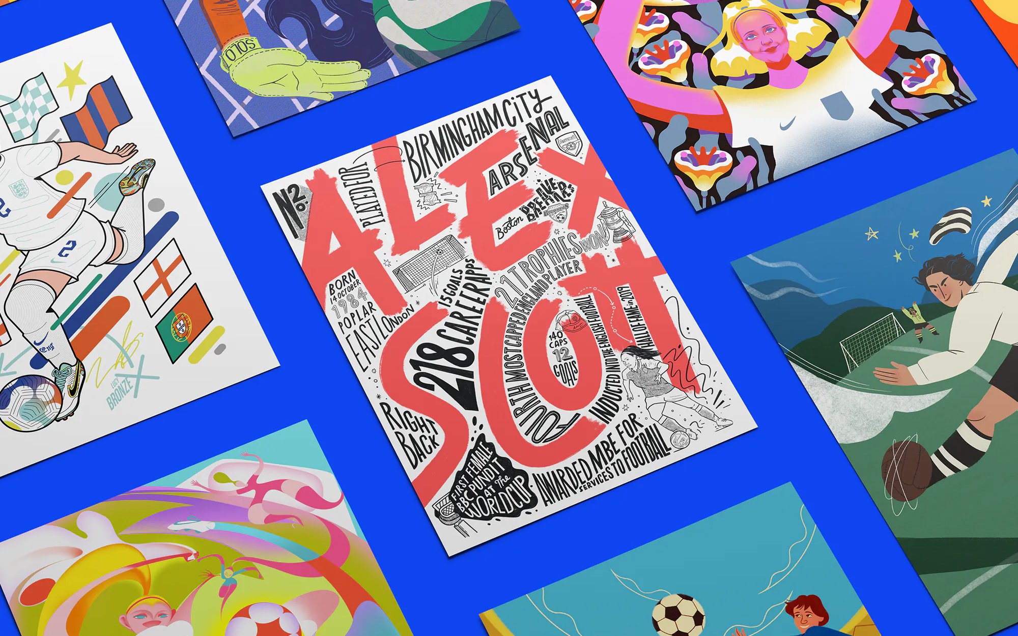 On the back of England’s Lionesses historic Victory at the 2022 UEFA Women’s Euros, art director Eve Warren spearheaded an illustrative project to inspire the next generation of girls to take up football. Thirty-three extraordinary illustrators were tasked with creating a piece of artwork that brought to life a trailblazing figure in women’s football. The diverse range of illustration styles creates a striking ‘posterzine’ and online platform to spread the story. It is inspiring to see these design and illustration used to get people talking about worldwide challenges and raise money for charities that help to make a change. Not only is this project about football but creativity too.