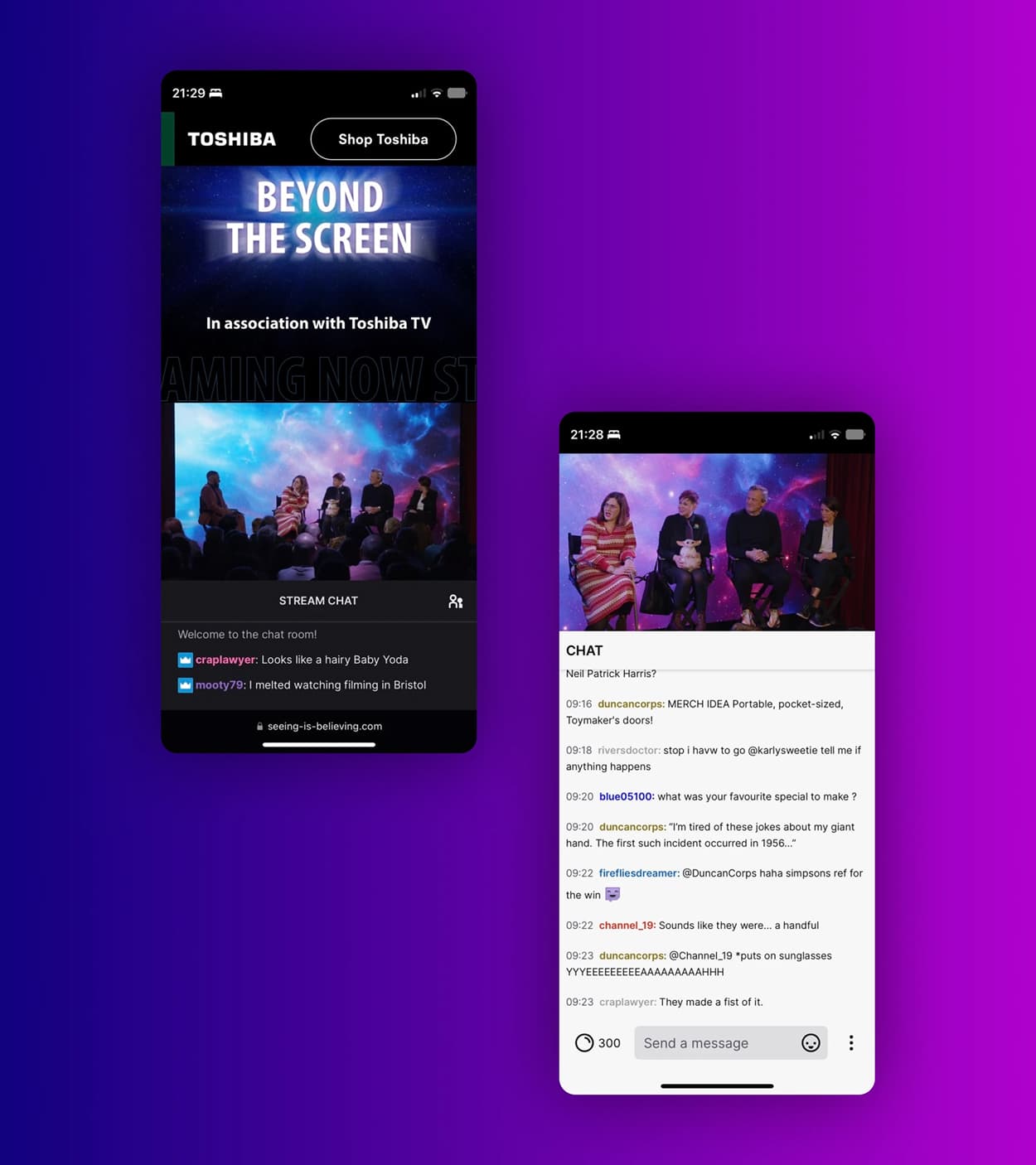 The event was to form part of Toshiba’s “Seeing is Believing” brand campaign that we launched earlier in the year, highlighting Toshiba’s commitment to bring incredible viewing experiences into the UK’s living rooms through its affordable technology. Whether it’s their favourite TV shoes, movies, or streaming content on Twitch, YouTube or TikTok.