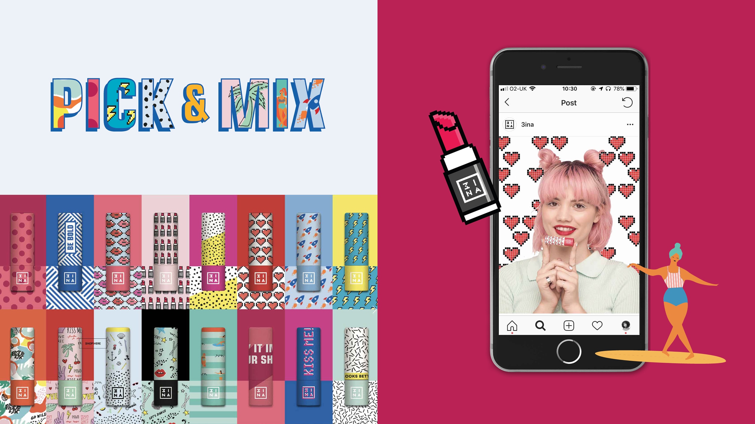 We developed a campaign strategy that brought 3ina’s disruptive, democratic beauty ethos to life by transforming their lipstick into a symbol of confidence and self‑expression. Through bold storytelling and inclusive messaging, the strategy empowered every individual to own their voice, strengthening emotional connection with the brand and amplifying its mission to make beauty a movement, not a mould.