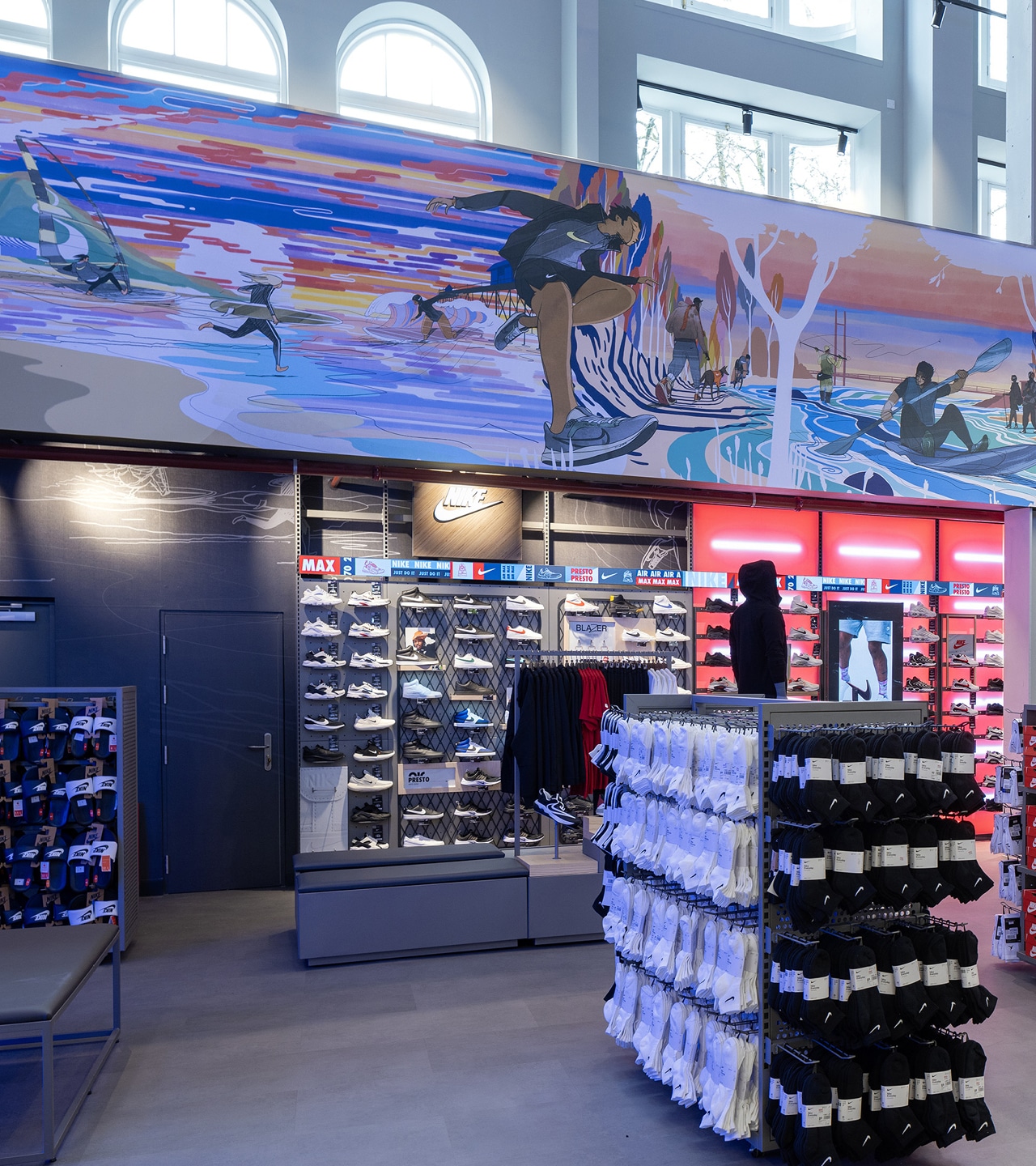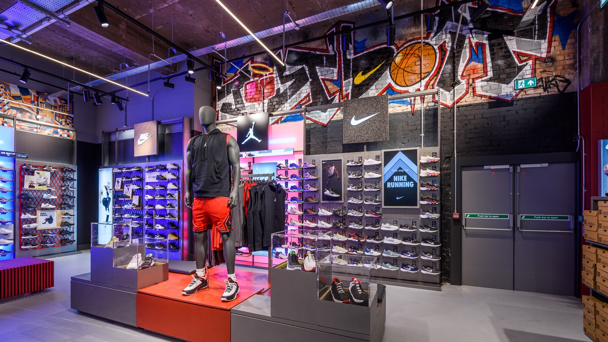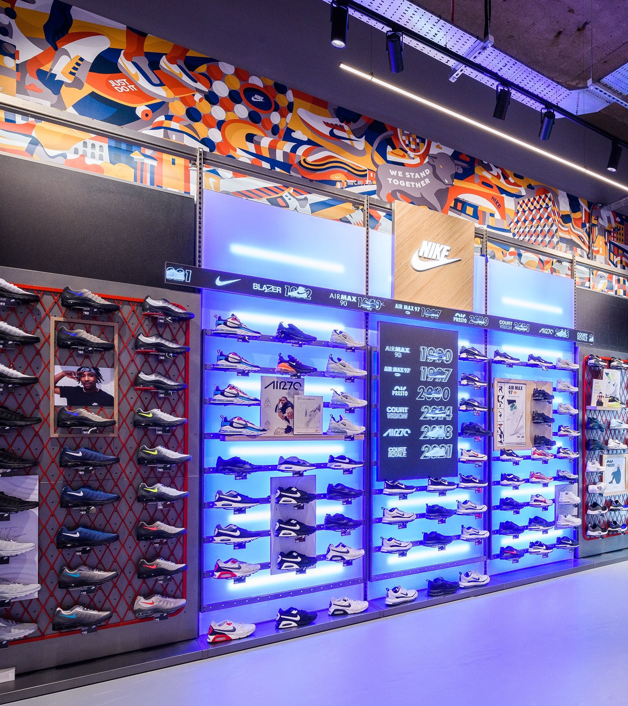 The outcome is transformative. These commissioned works turn Nike retail environments into living cultural canvases. They are authentic celebrations of their respective cities - layered with local references, sporting heritage and shared memory - while remaining unmistakably Nike. Executed beautifully and at scale, the installations move beyond visual enhancement to become cultural landmarks within the space.